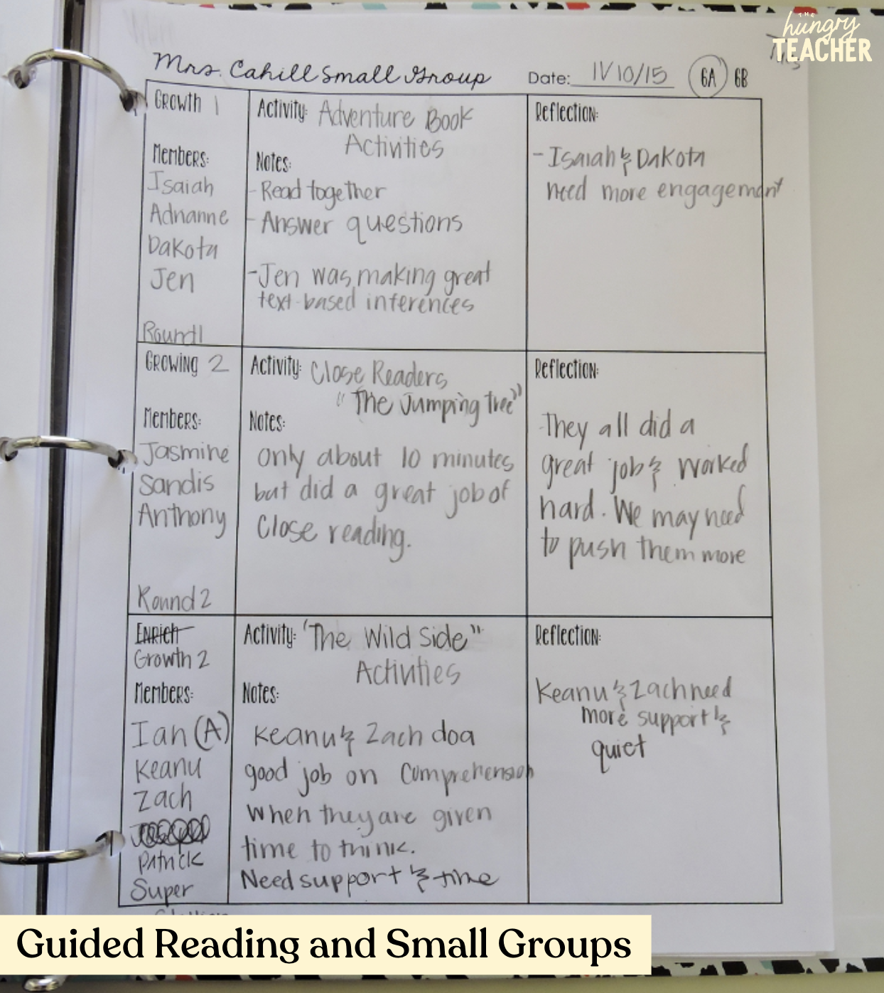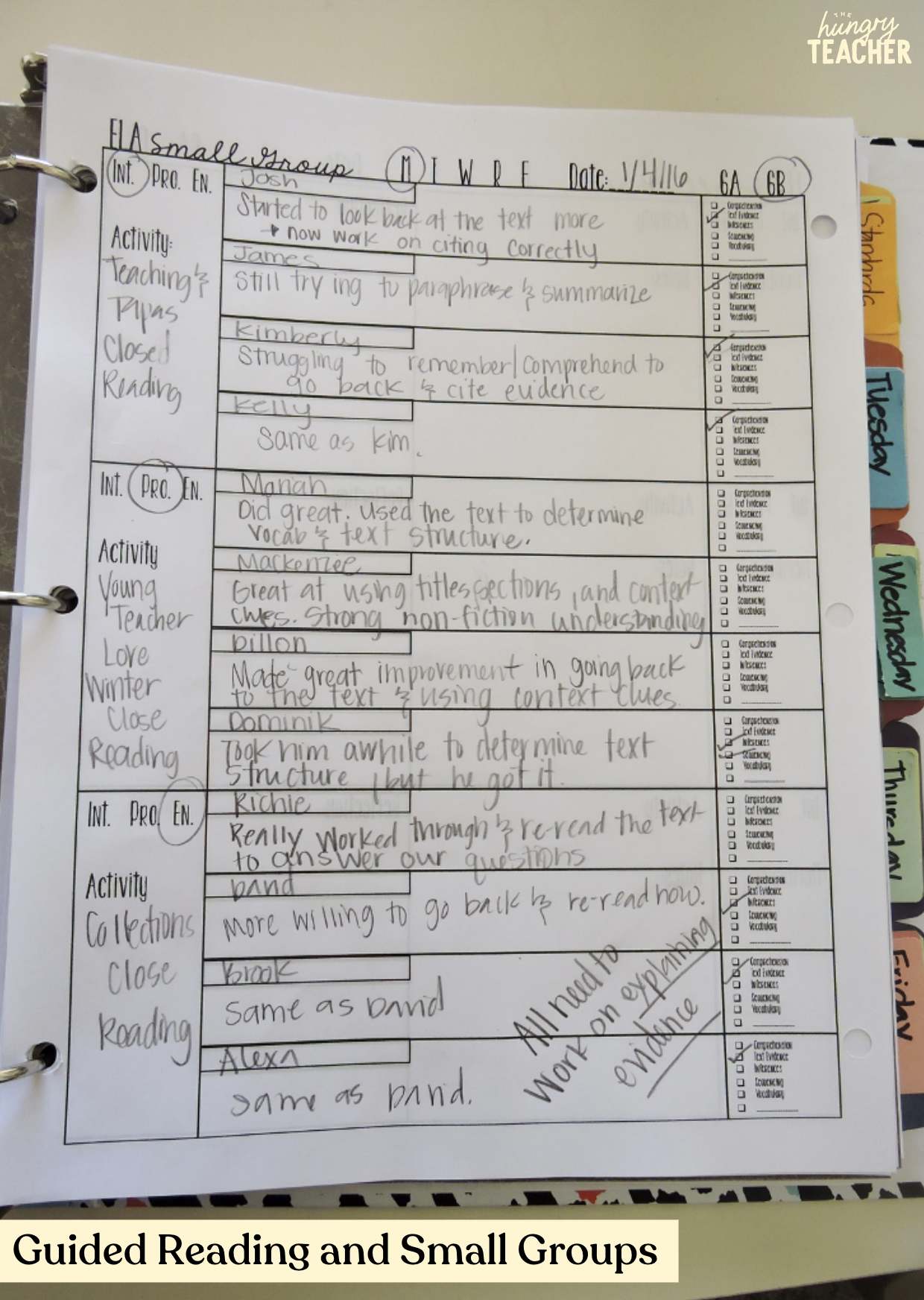 I learned pretty quickly that I needed one flexible system that could grow and change as my groups shifted throughout the year. My groups fluctuated and moved around a lot. I was constantly switching kids. This meant my “perfectly” labeled binders weren’t helpful because they didn’t match the groups at all. I realized I needed more flexibility with my binders and group forms. The notes were used to drive my whole-group and small-group instruction. They also needed to be there to collect information about my students. It made sense that I just needed to find a system that worked for me.