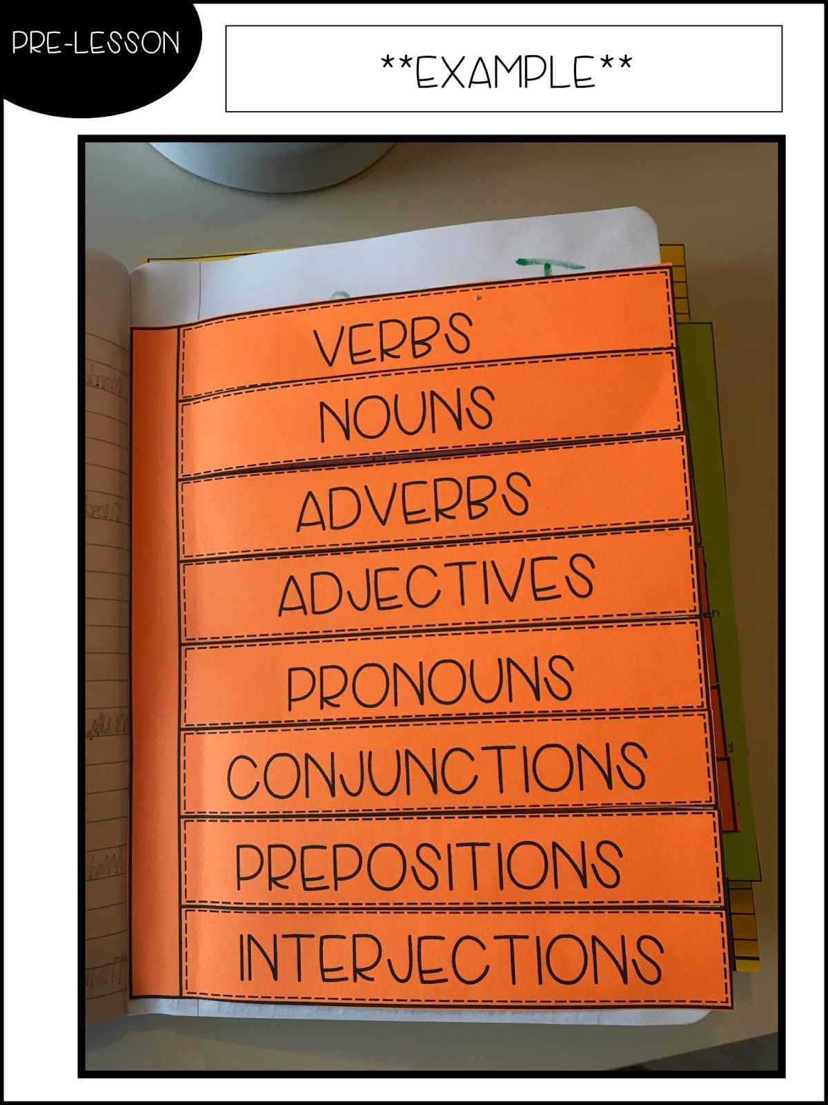 I had already tried to outline the Tuesday lessons to the assessments that I created for Fridays, but I realized I need to have much more explicit instruction for students to learn the grammar skills. Because of that, I have created simple interactive notebook lessons for students and teachers to use each Tuesday. They are a little overloaded in the beginning, but they slow down as the students learn more skills.