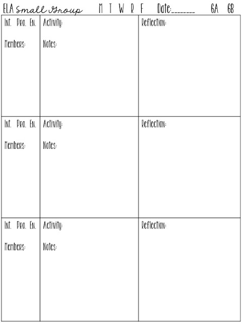 After we do our ELA Bell Ringer and our Collections lesson, I do my first round of groups. It took A LOT of trial-and-error, A LOT of re-organization, and A LOT of flexibility on my part, but after playing around with some stuff, this was the schedule I came up with. I have two 6th grade ELA classes.