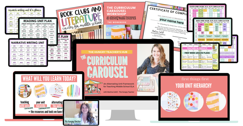 The Curriculum Carousel Workshop teaches you exactly how to fit all reading, writing, and grammar standards into your schedule using a proven alternating-unit framework. Perfect for teachers who want to stop feeling behind and start feeling in control.