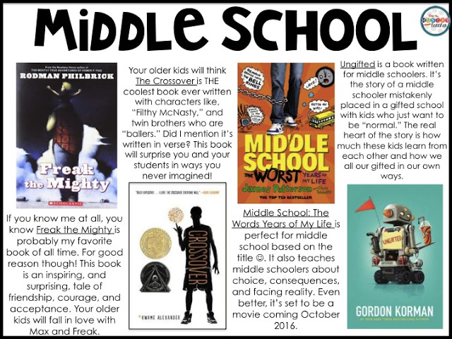 These are some of my favorites, based on grade levels and category. No reading levels though, because I am a die-hard level rebel :).