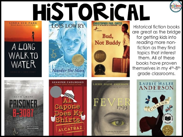 So I LOVE books and over the last 3-4 years of teaching, I have started to kind of put books into categories based on what I feel or think as I am reading, and always take this into consideration when I pick a read aloud or create a reading unit. I still believe that students will usually LOVE the books we love, but I also know that I love books from a bunch of different genres and this can depend on grade levels.